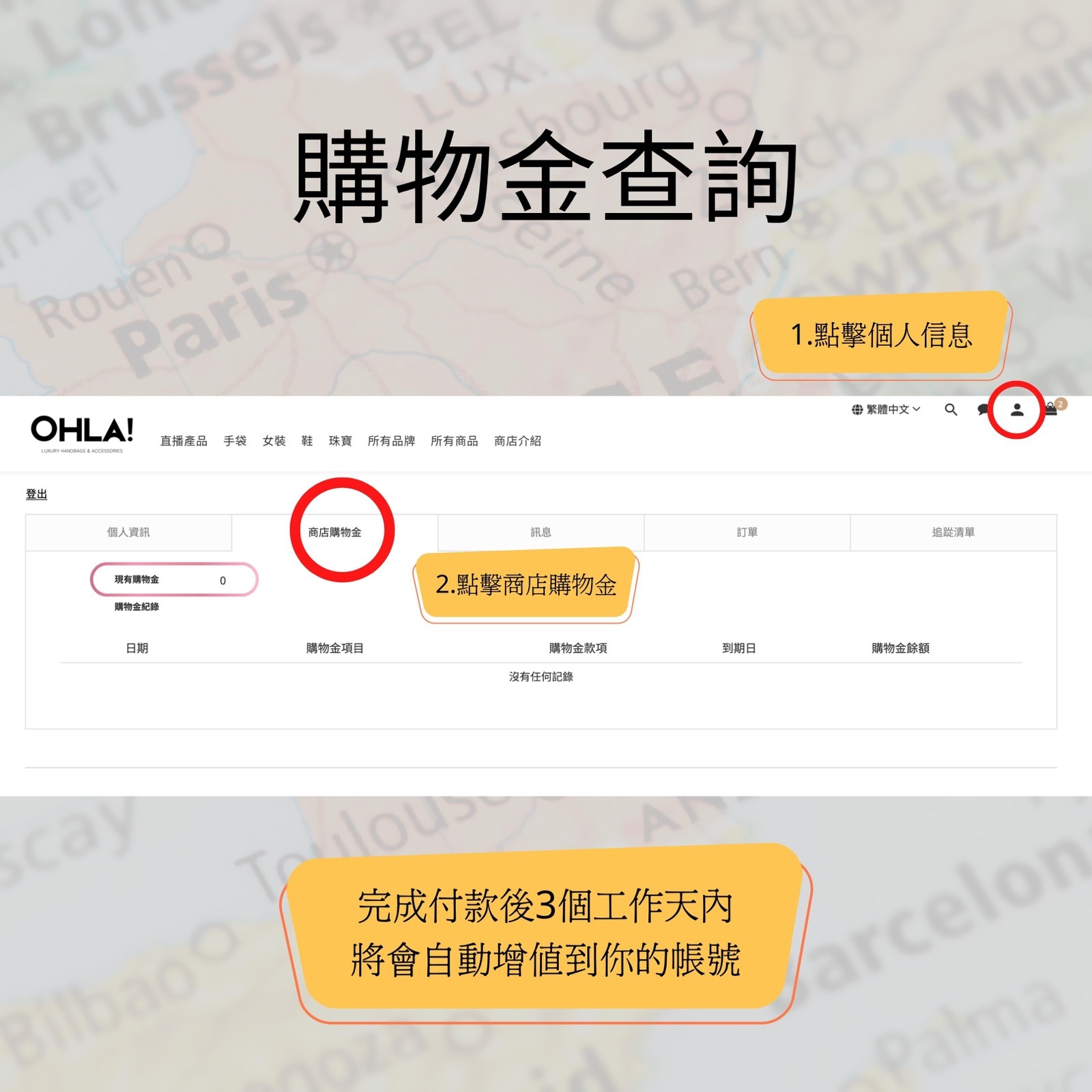 ⭕ 購物金於付款後1個工作天內存入會員帳戶